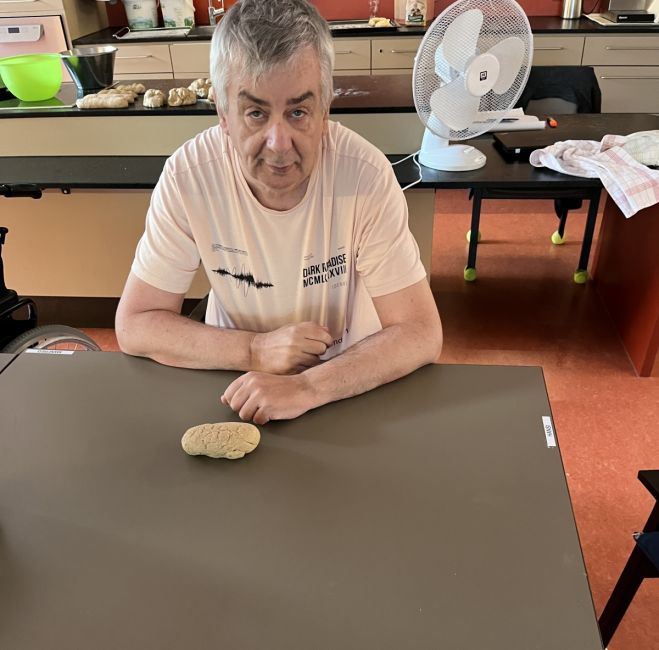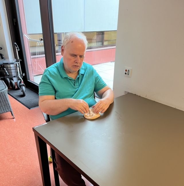 Jeder Klient bekam einen Teig und durfte ihn zu einem Weckerl formen. Anschließend wurden die Weckerl gebacken und am Abend gegessen. Die Klient*innen hatten sehr viel Freude dabei.