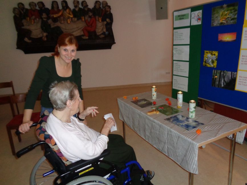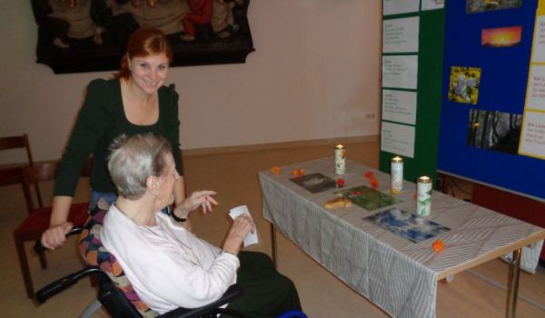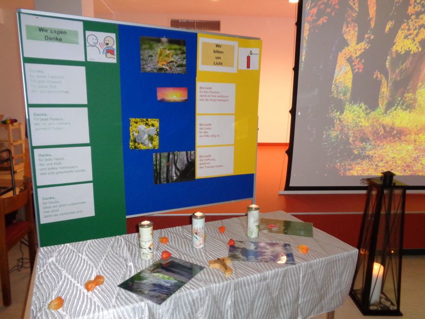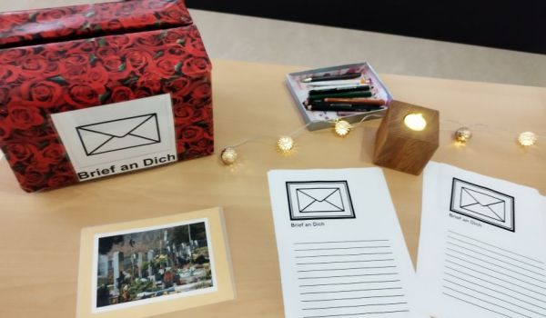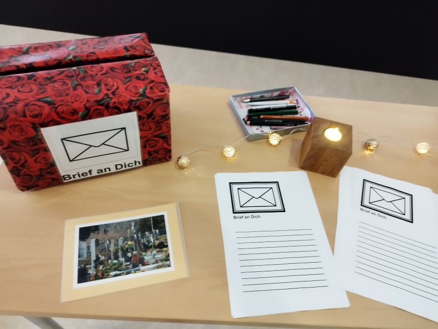 Jeder konnte sich in dieser Stunde individuell Zeit nehmen und persönliche Gegenstände mitbringen wie beispielsweise Blumen, Herbstblätter, Tannenzapfen, Zeichnungen, Erinnerungssteine oder LED-Lichter. Somit entstand ein bunter Tisch mit vielen Erinnerungen an die Menschen, die vorausgegangen sind. Vor allem das Brief schreiben „Ein Brief an Dich“ gefiel allen sehr gut. Es war ein sehr schönes Gedenken an die Verstorbenen.