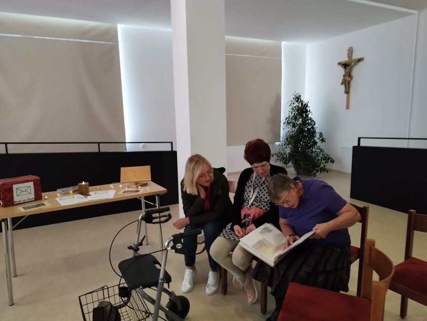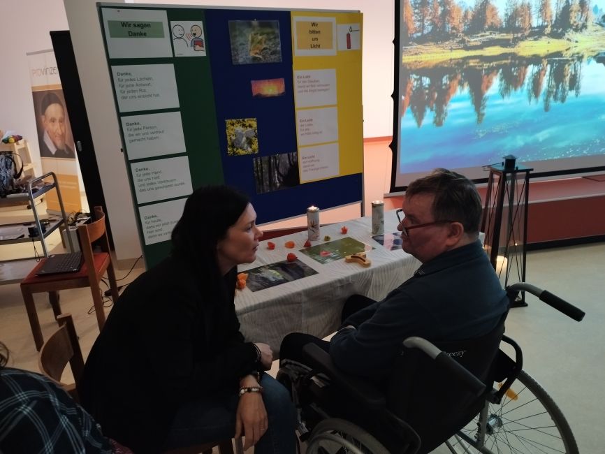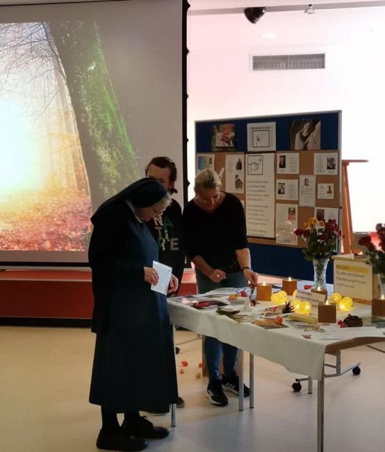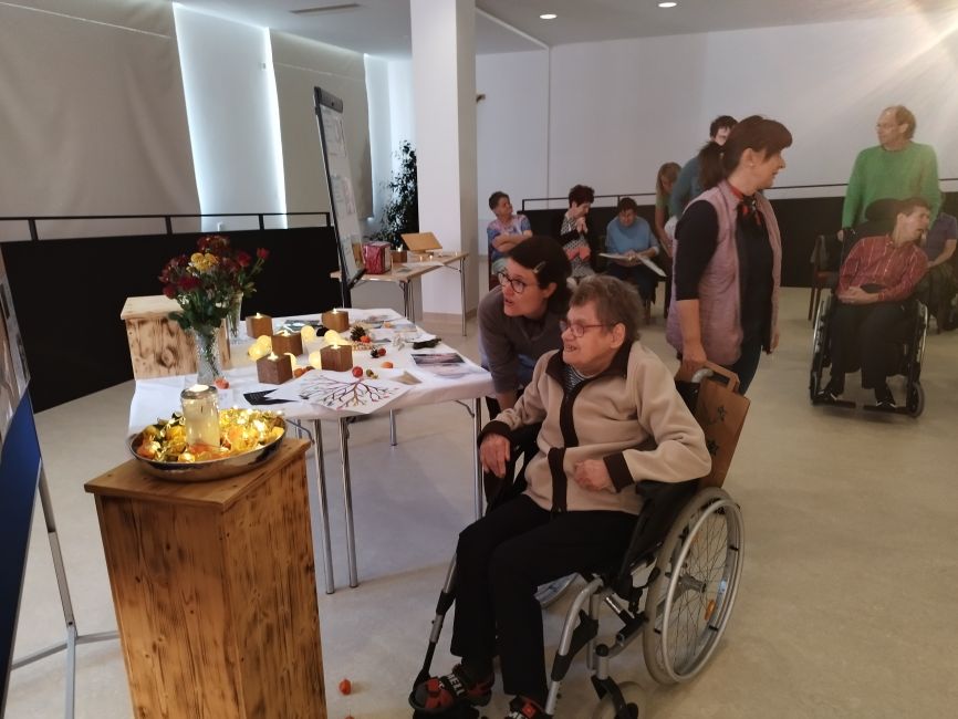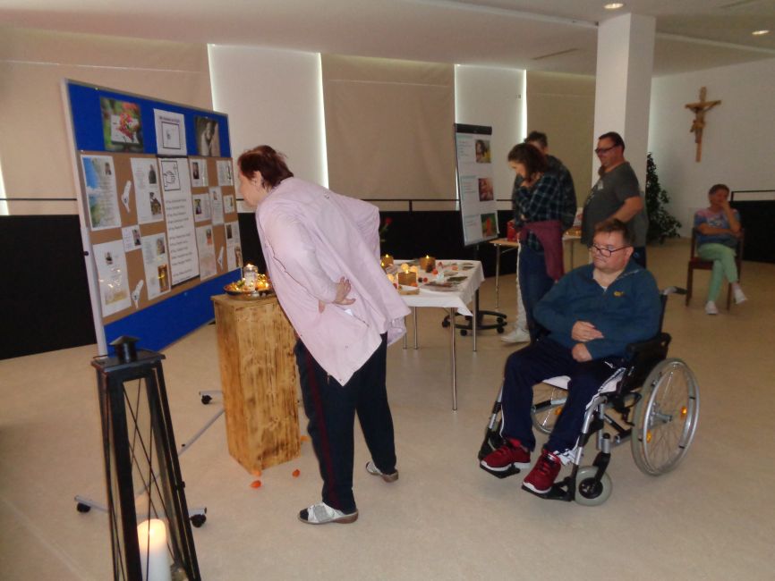 Am Montag vor Allerheiligen gab es die Möglichkeit für alle Klient:innen und Mitarbeiter:innen, im Anna-Bertha-Saal in Provinzenz Schernberg „In-der-Stille-oder-in-der-Gemeinschaft“, an die Verstorbenen zu gedenken.