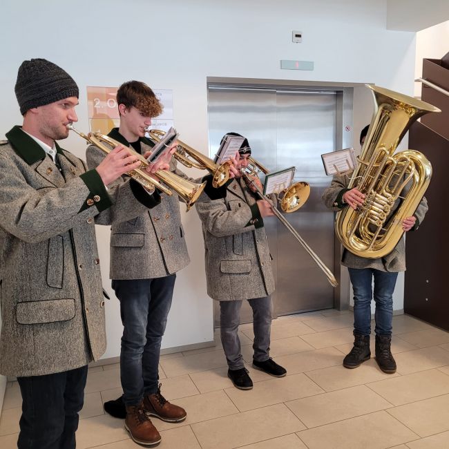 Am Nachmittag wurde bei einem netten Beisammensein viel gelacht, schön geplaudert und einige Kekse gejausnet. Auch das örtliche Bläserquartett besuchte die Klient:innen und sorgte mit schönen Melodien für eine besinnliche Weihnachtsstimmung. Danach war die Bescherung, wo viele tolle Geschenke mit großer Freude ausgepackt wurden.