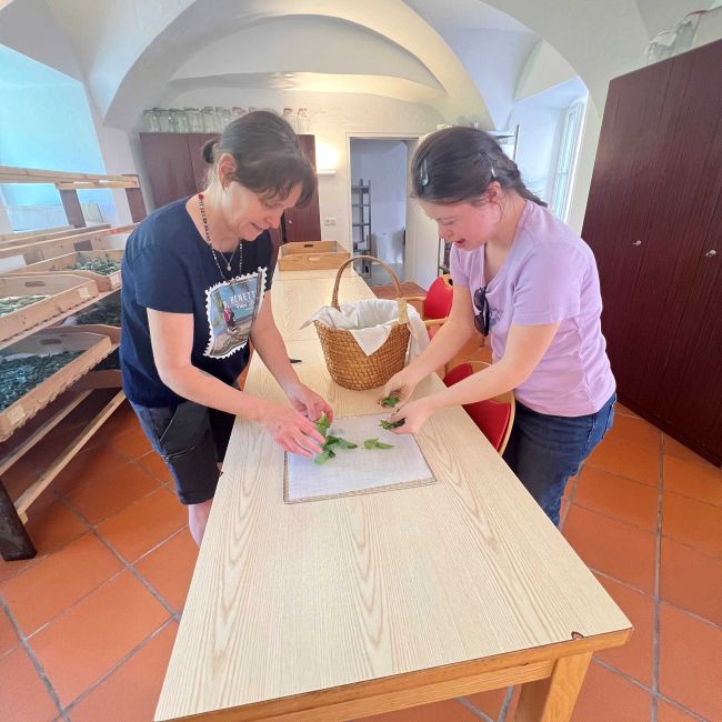 Die Kräuter werden getrocknet und dann in Papiertaschen abgefüllt. Aus den Kräutern werden Salze, Liköre, Marmeladen und Bleib-Fit-Tropfen hergestellt. Diese und viele weitere Produkte sind im Vinzenzladen (Standort Schernberg) oder im Onlineshop unter https://provinzenz.at/shop/ erhältlich.