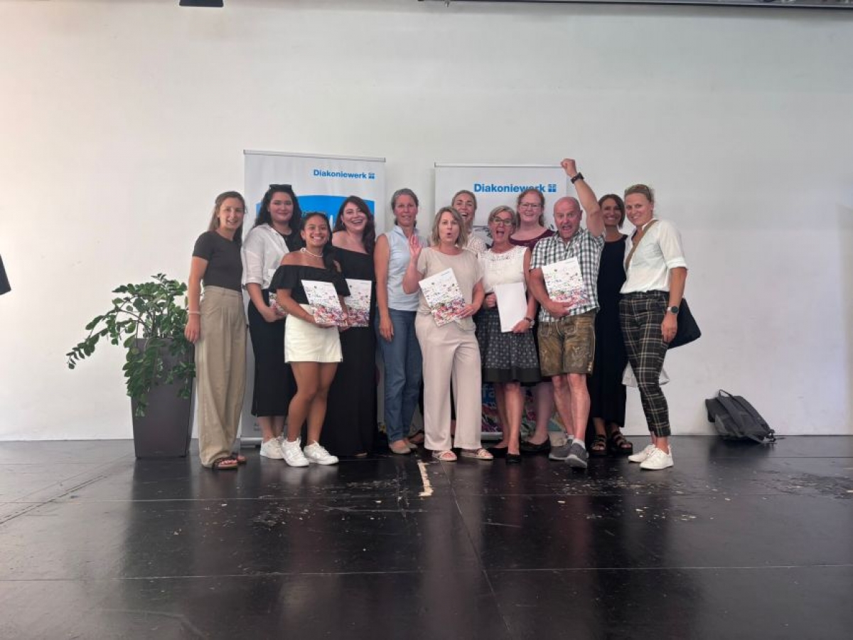 Zeugnisverleihung für unsere acht Absolvent:innen der SOB des Diakoniewerks mit Abschlüssen in Pflegeassistenz, Fach- und Diplomsozialbetreuung.