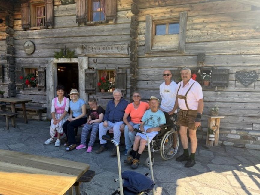 Gemeinsam ging es in die Berge, wo frische Luft, schöne Ausblicke und die ruhige Natur auf die Gruppe warteten. Vor Ort blieb viel Zeit, die Umgebung zu genießen, beisammen zu sitzen und die besondere Atmosphäre der Alm auf sich wirken zu lassen.
