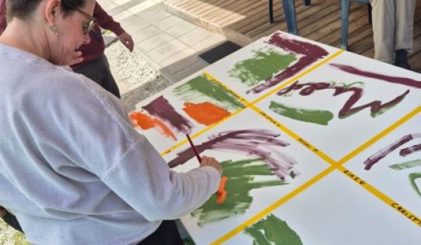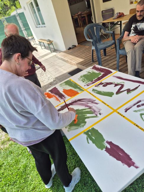Im Anschluss genossen alle ein gemeinsames Mittagessen, bevor sie an einem großen Gemeinschaftsbild mitwirkten. Dabei konnten die Teilnehmenden ihrer Kreativität freien Lauf lassen und ein farbenfrohes Kunstwerk als Erinnerung an diesen gelungenen Tag gestalten.