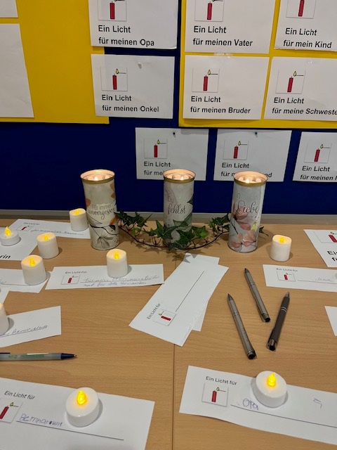 An verschiedenen bunten Stationen konnten die Teilnehmenden auf vielfältige Weise der Verstorbenen gedenken– etwa durch Malen, das Entzünden von Kerzen, das Schreiben von Briefen oder kleine Rituale wie Seifenblasen steigen lassen.