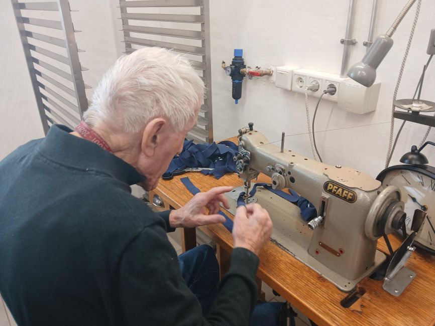 Im Tageszentrum Schernberg wird aus „nicht mehr gebraucht“ ein echtes Lieblingsstück: die ausgediente Arbeitskleidung unserer Schwesterorganisation Lebensraum Herz-Jesu landet nicht im Abfall – sondern auf unseren Werktischen.