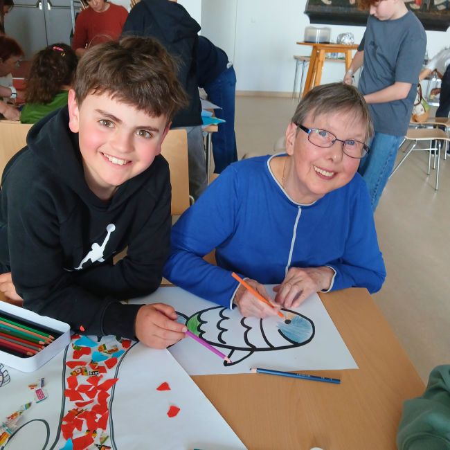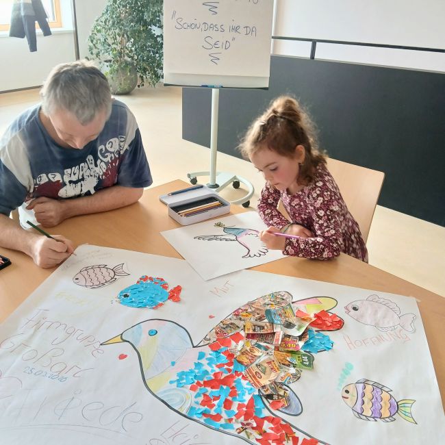 Gemeinsam erlebten wir Kreativität, Austausch und viel Freude. Beim Fragespiel konnten wir uns besser kennenlernen und miteinander ins Gespräch kommen. Anschließend entstand in gemeinsamer Teamarbeit eine farbenfrohe Collage – ein Kunstwerk, das die Vielfalt unserer Gemeinschaft wunderschön widerspiegelt.